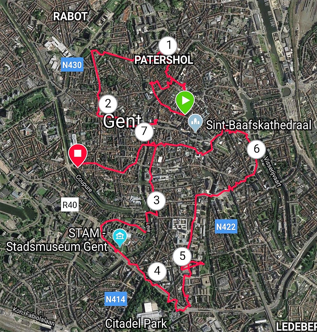Na de lunch hebben wij eerst een rondje door de Sint-Baafskathedraal gelopen. In het winkeltje van de kathedraal vonden wij een stadswandeling door Gent. Buitengekomen zou onze wandeling beginnen. Halverwege dronken wij een kopje koffie bij Exki. Waar wij ons wederom over verbaasden, was dat er geen vegan gebakjes of koekjes voor bij de koffie te vinden zijn bij Exki. Iets wat je eigenlijk wel zou verwachten. Later op onze route konden wij wel een lekker stukje taart scoren bij de Bioshop Pimpernel. Samen met een flesje drinken wandelden wij verder. Het eindpunt van de wandeling kwam in zicht en het werd ook wel tijd voor het avondeten. Beetje vroeg, maar het theater wachtte op ons.