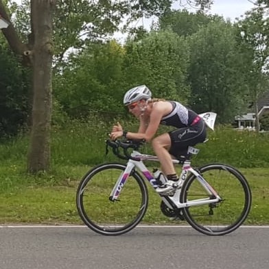 ’In 2009 zei mijn beste vriendinnetje en sportmaatje tegen mij: zullen we samen de Damloop doen? In de tien jaar die volgden, werd dit een trend. Zij riep zomaar een sportdoel en ik zei zonder al te veel nadenken ja. Op die manier hebben we samen halve en hele marathons gelopen. Morgen (10 februari) staat marathon nummer vier op de planning. Vijf jaar geleden zei ze: we kunnen ook een keer een triatlon proberen. Inmiddels zitten we samen in een triatlonteam en doen we mee in de divisie van de NTB. Afgelopen jaar heb ik de halve triatlon van Challenge Geraardsbergen gedaan. Meest trots ben ik op de weg ernaartoe. Niet eens op de wedstrijd zelf. Ik heb van elke training genoten en voelde mijn lijf sterker en fitter worden. Helaas at ik toen nog niet plantaardig. Ik denk dat het nog beter was gegaan als ik toen al plantaardig had gegeten.’