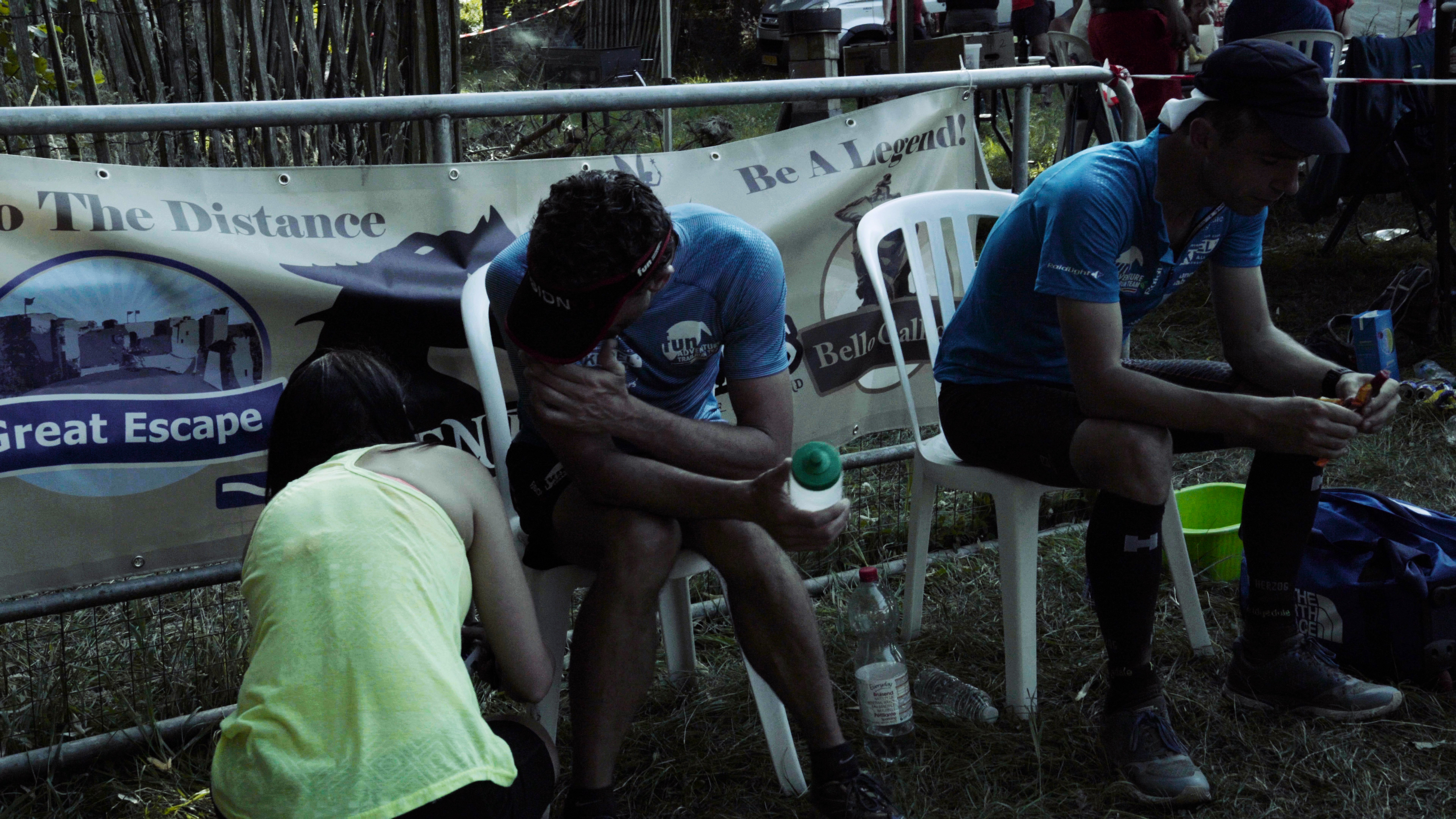Astrid: ‘We zijn toen ingedeeld om Checkpoint 2 te coördineren waar lopers na 105 km iets warms te eten, hun drop bag en een medische controle zouden krijgen. We hebben onze ogen uitgekeken, hele broodjes hamburger kwamen uit de drop bags, mensen draaiden shag en bestelden biertjes… zijn dit sporters? Nadat ons Checkpoint dichtging en opgeruimd was, zijn we foto’s gaan maken op het parcours en bij de finish, voor velen een zeer emotioneel moment. Van de 47 lopers kwamen er maar 15 aan de finishlijn.’