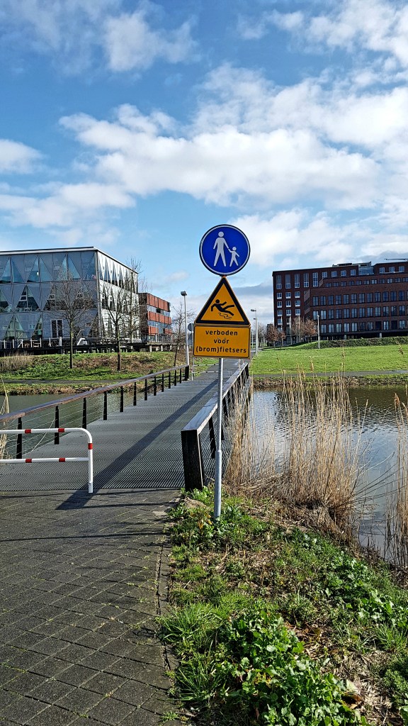 De eerste kilometers kronkelden door het kantorenpark Papendorp heen en brachten ons op de sporadisch aanwezige groene plekken tussen de kantoorgebouwen. Via de brug over de A2 liepen wij langs Strijkviertel richting De Meern. Dat het Meentpark leuke paadjes heeft wist ik al van enkele hardlooptrainingsrondjes. Dus leuk om hier nu ook een keertje te wandelen met Sam. Bij Castelium Hoge Woerd namen wij even pauze en konden wij naar het toilet. Groot nadeel als je op zondagochtend door de bebouwde kom loopt, is dat er nergens iets open is en ook de organisatie had schijnbaar niet bedacht dat je gedurende twintig kilometer wandelen misschien wel een keertje moet plassen.